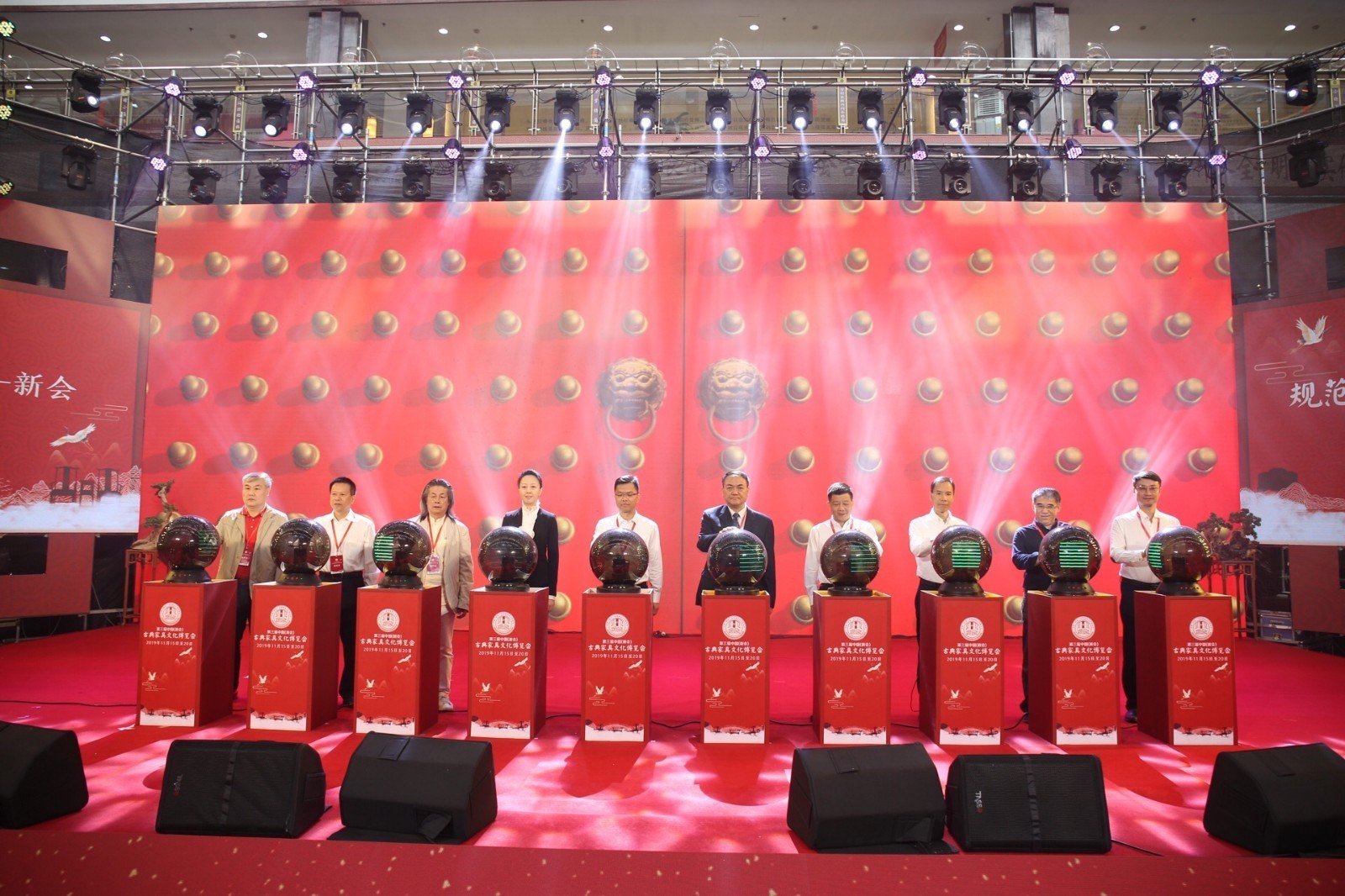 随后,多位领导嘉宾共同触摸启动台,为“第三届中国(新会)古典家具文化博览会”进行了揭幕。